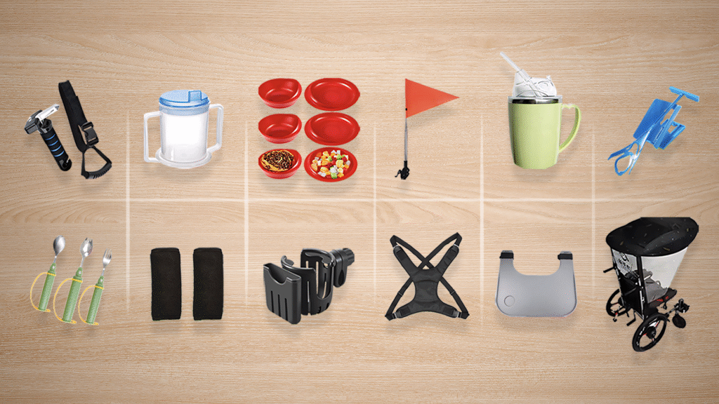 - Multi-functional – e.g., adjustable tables or foldable aids that save space