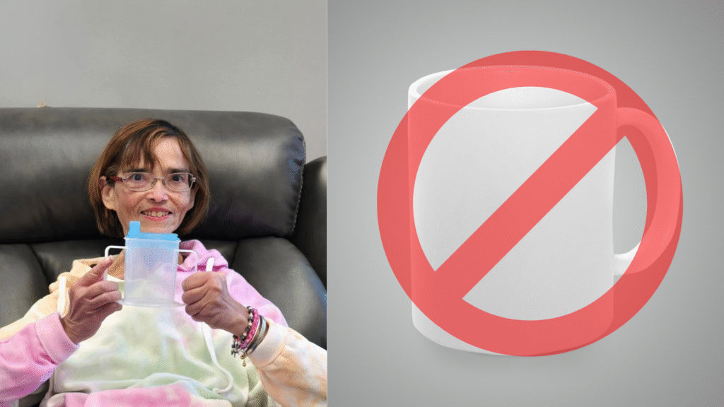 A Double Handled Cup provides stability and control for people with tremors or weak grip.