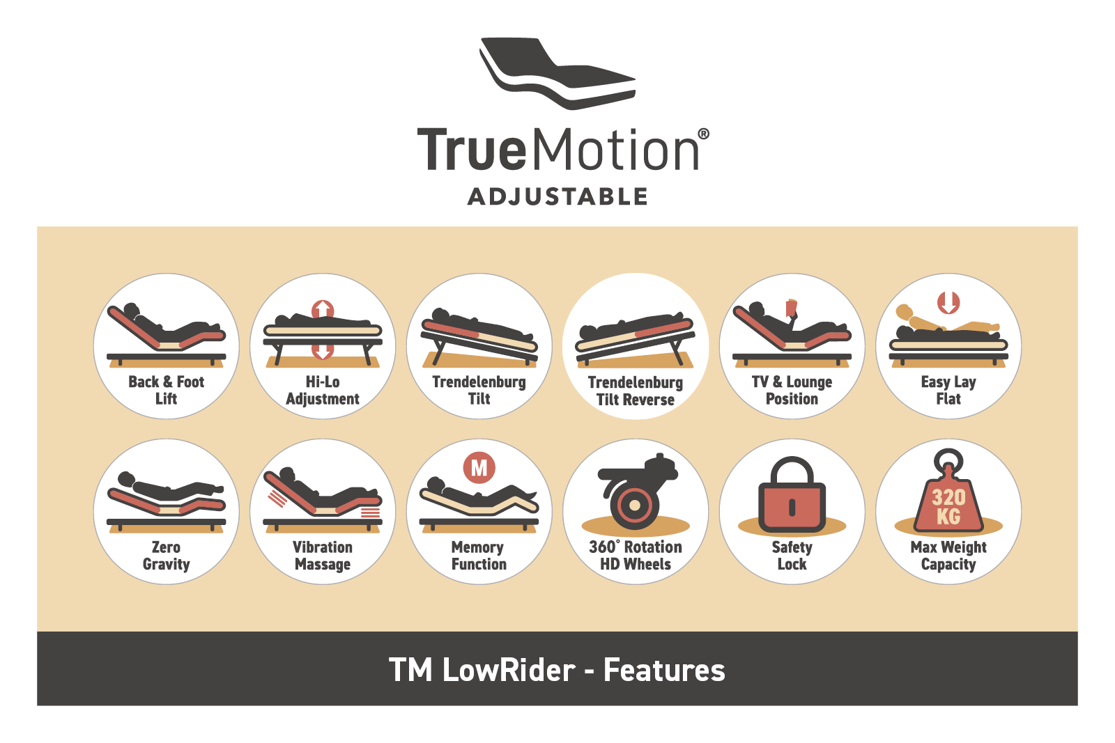 • Raising and lowering the full bed frame (hi-lo function)