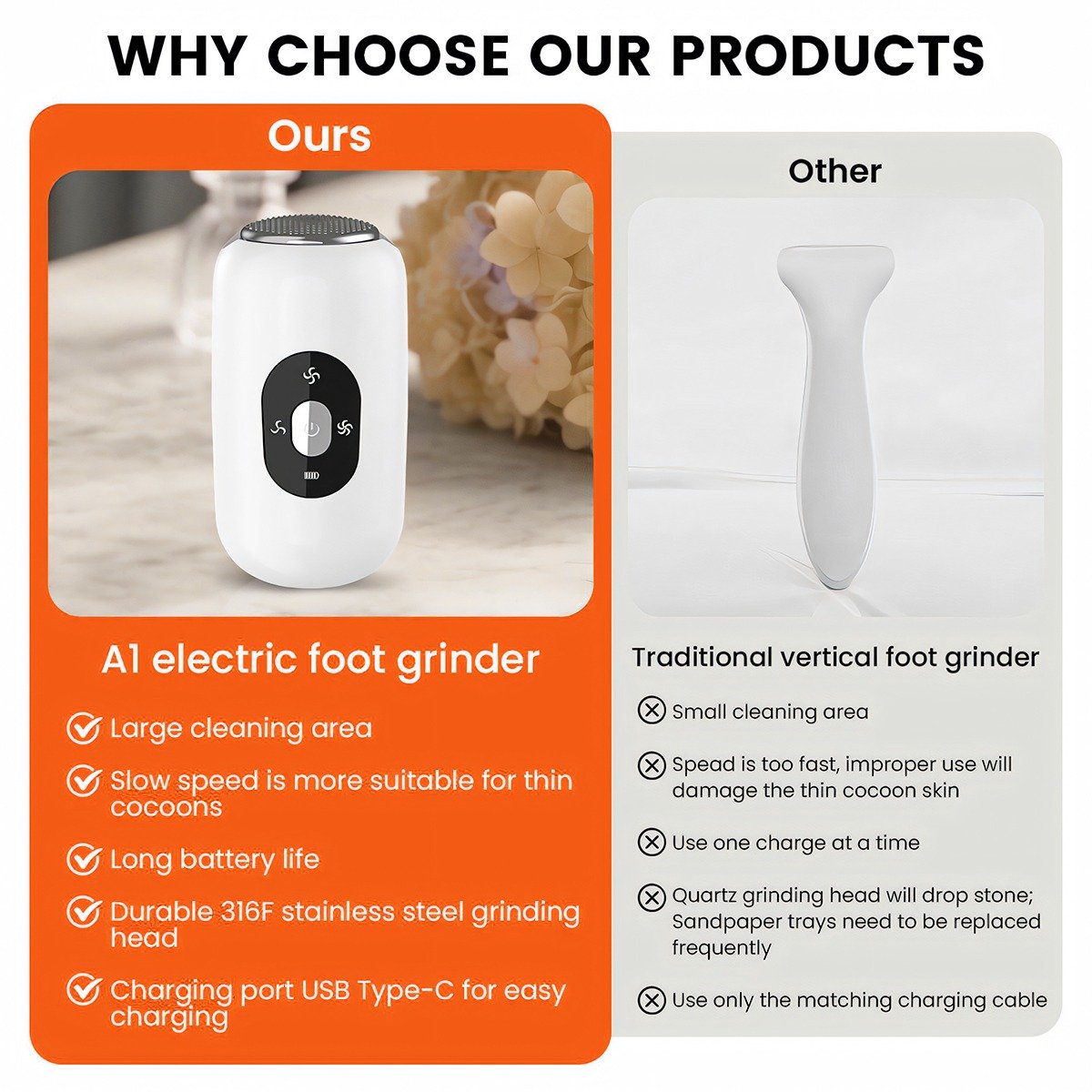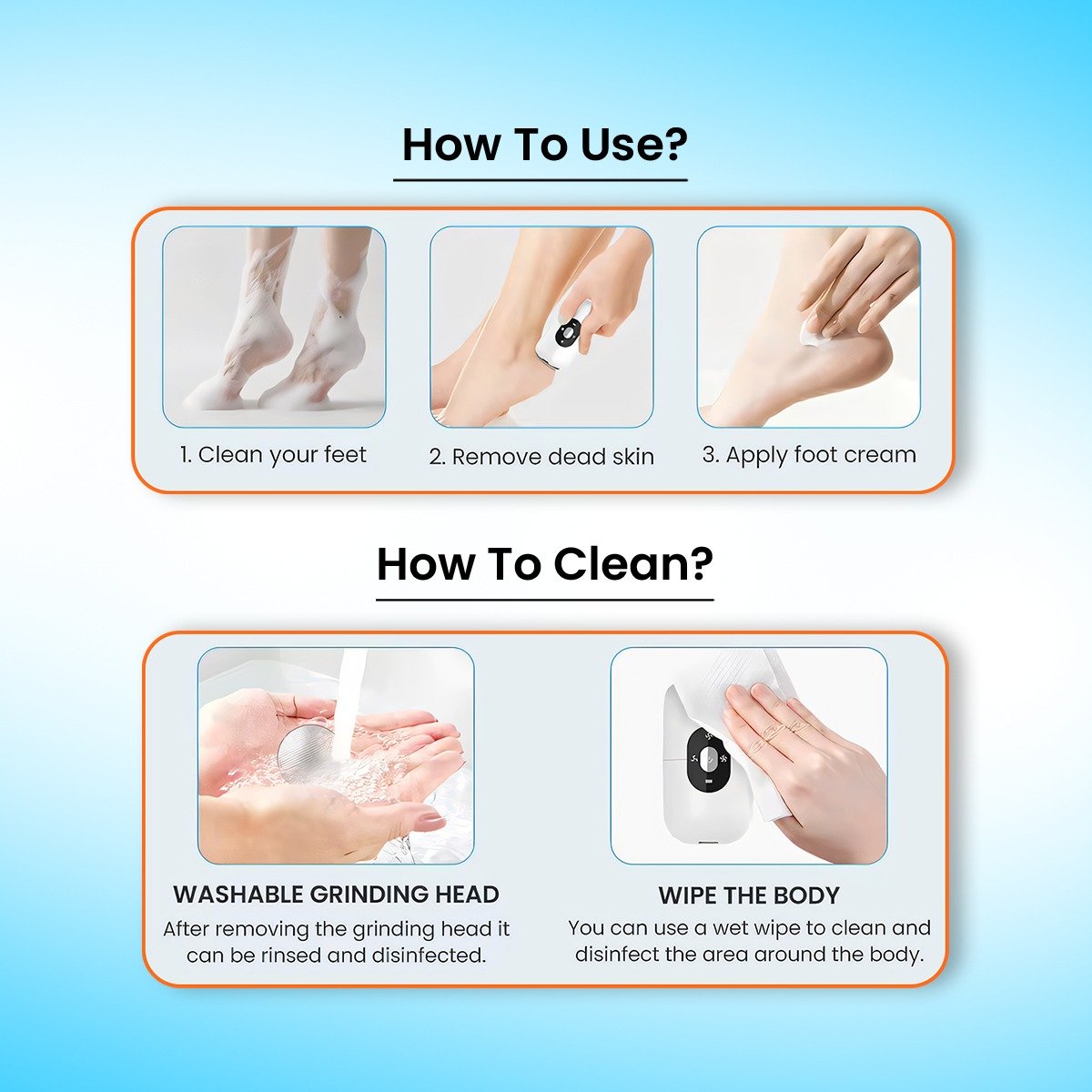 - High‑performance smoothing: About 15,000 RPM foot shaver electric action removes thick calluses quickly