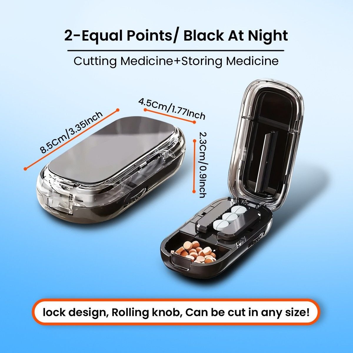 - 2‑in‑1 Design: Pill splitter plus storage to simplify daily routines