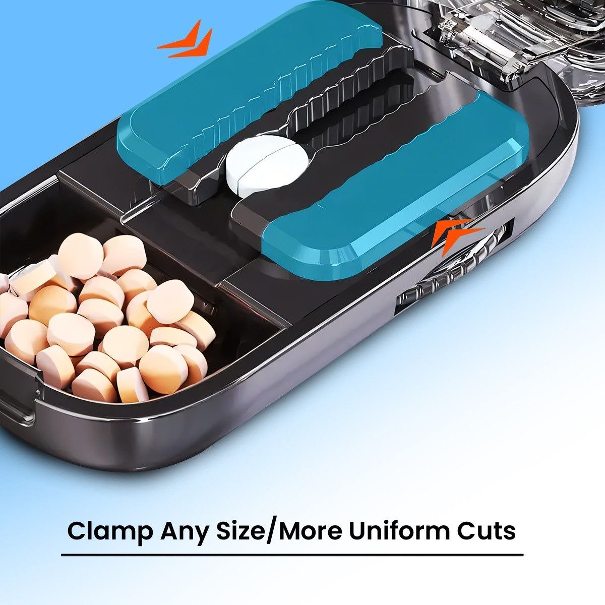 - Precision Blade: Stainless‑steel tablet cutter for clean halves and quarters
