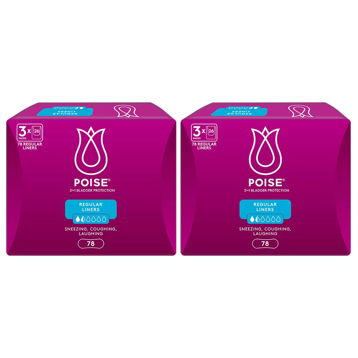 Poise Regular Liners for Bladder Leaks 2 x 78 Pack