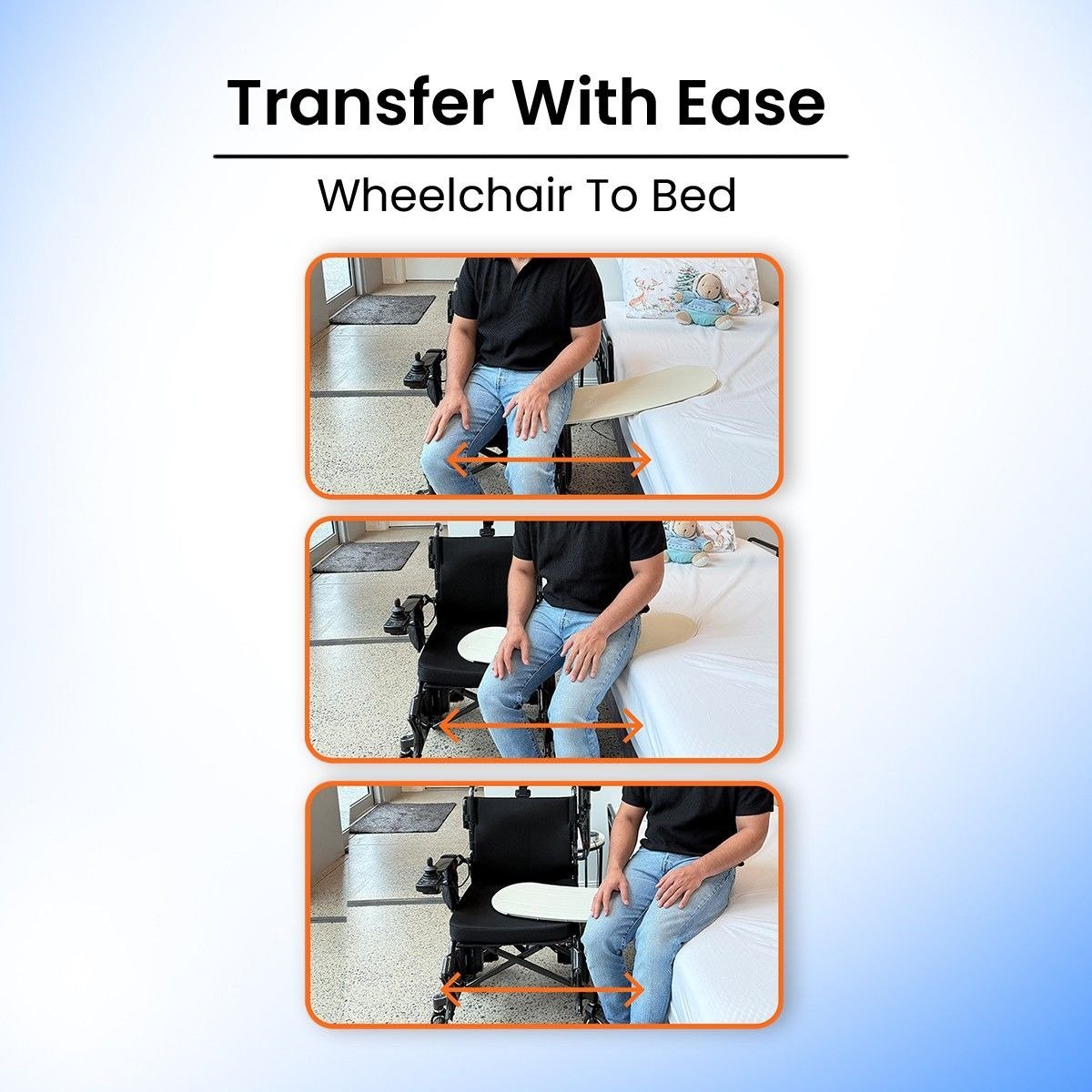 Unlike a standard plastic transfer board, this solution reduces strain on your arms, shoulders, and back. It’s an ideal transfer board for elderly users, a reliable transfer board for disabled individuals, and a trusted transfer board for wheelchair users who want safer movement.